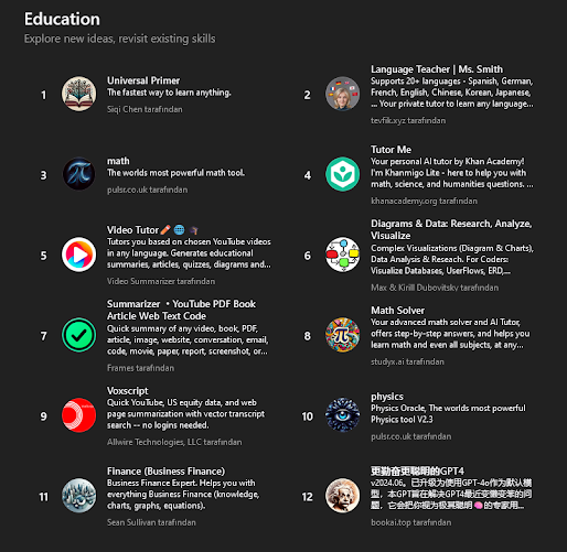 Diğerleri de yine yararlı GPT'ler, göz atmanızı şiddetle öneririm.